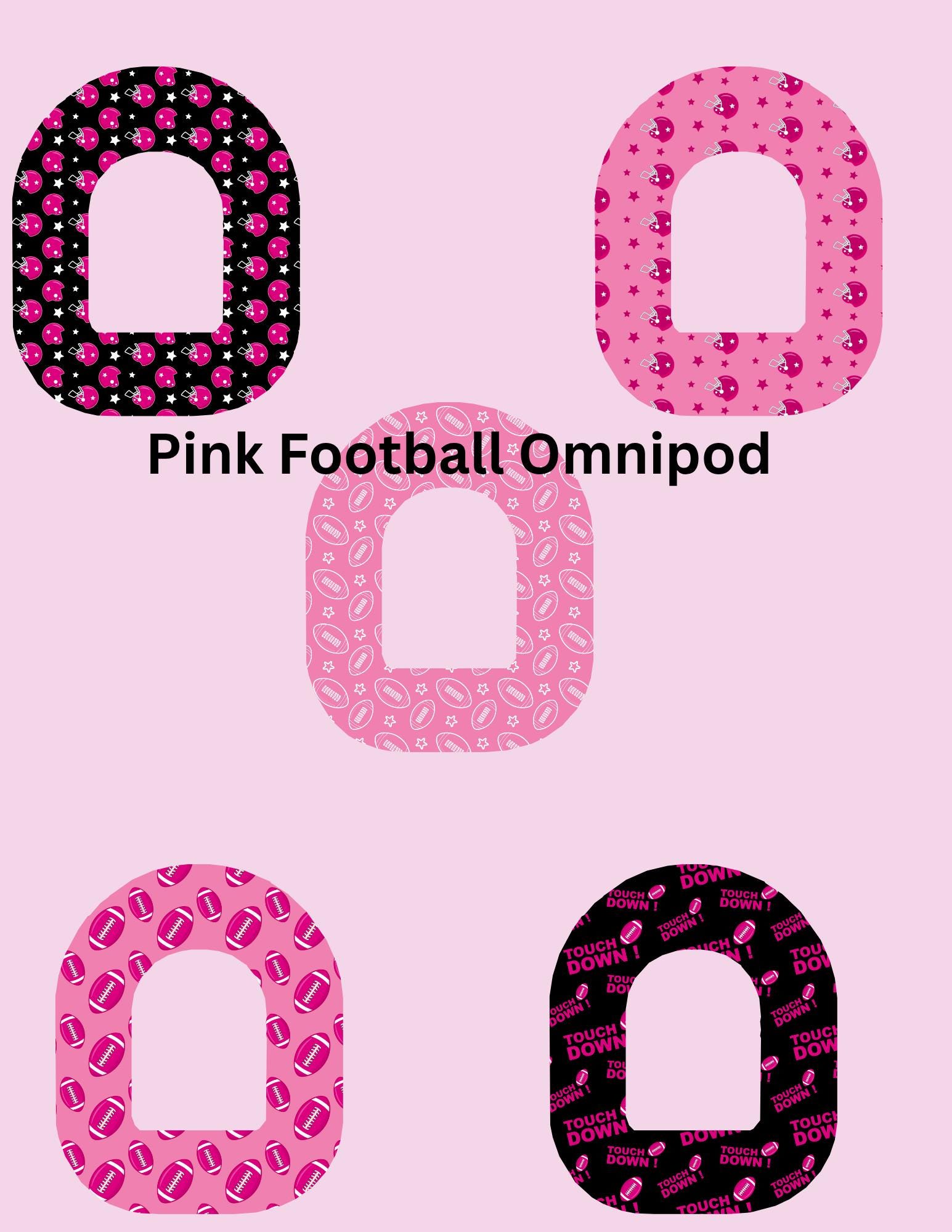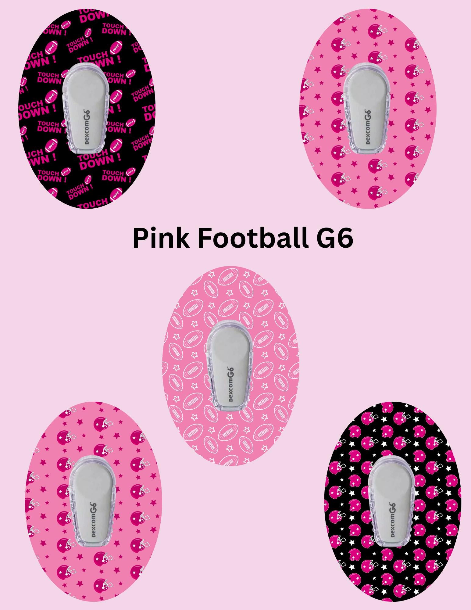 Pink Football CGM Covers, Dexcom G7, G6, Libre 2, 3, Omnipod, 5 Pack
