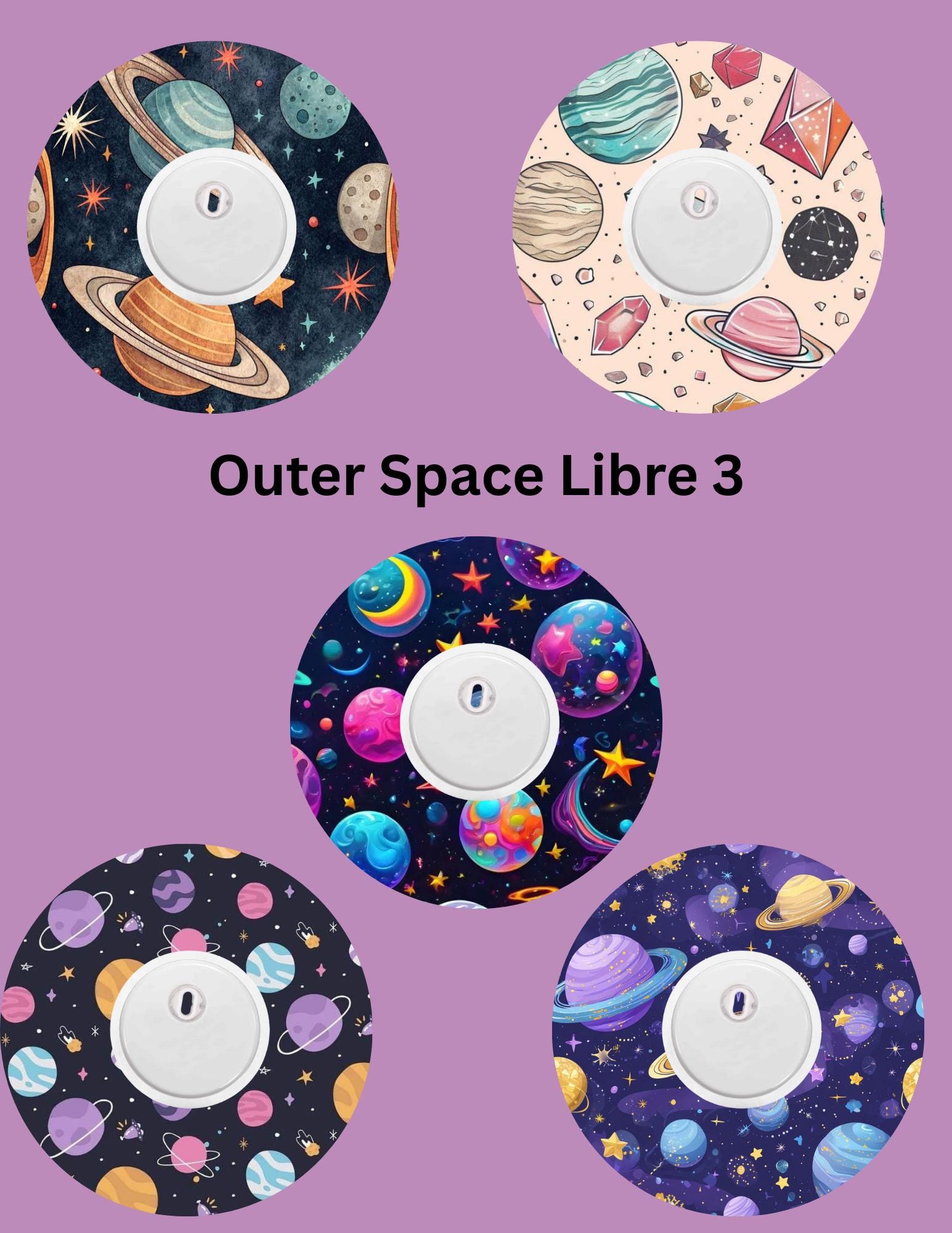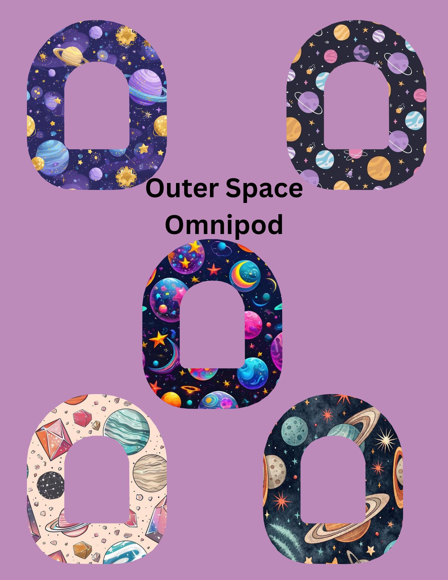 Outer Space CGM Patches: Dexcom G7/Libre/G6/Omnipod, Style Pack of 5