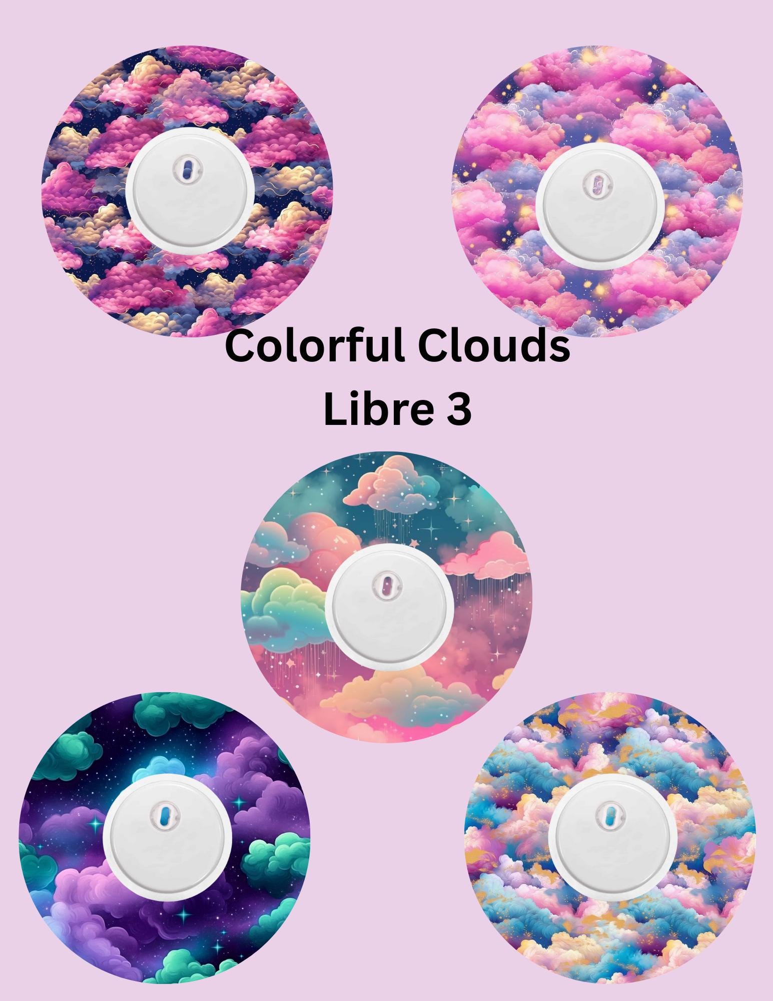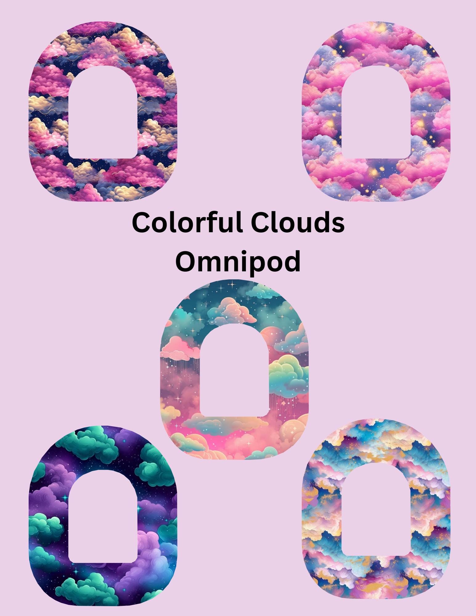 Colorful Clouds CGM Adhesive Patch, Dexcom G7/Libre/G6, Omnipod Cover - 5 Pack