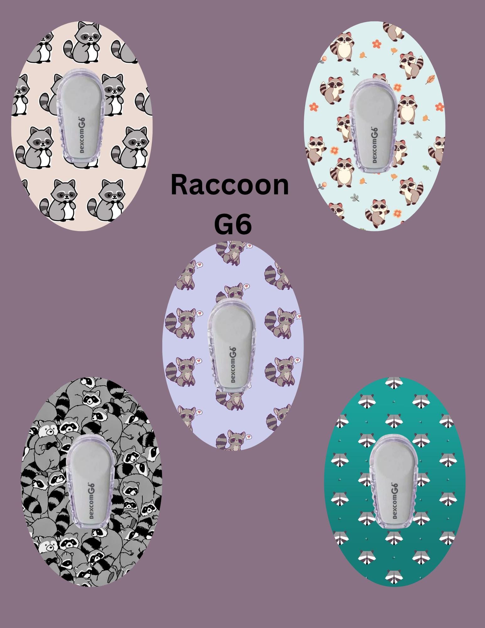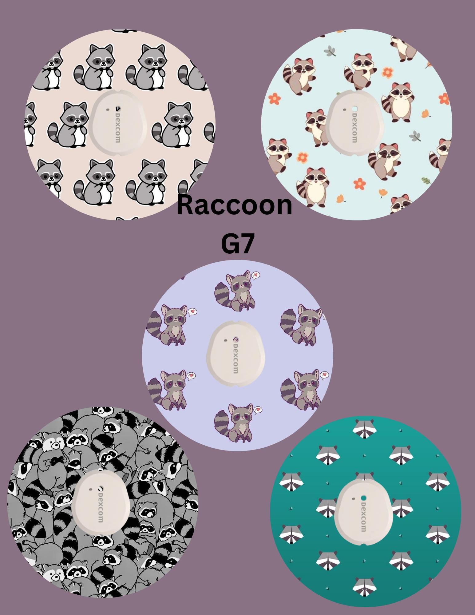 Raccoon Dexcom CGM Covers: G7, G6, Libre, Omnipod - 5 Pack