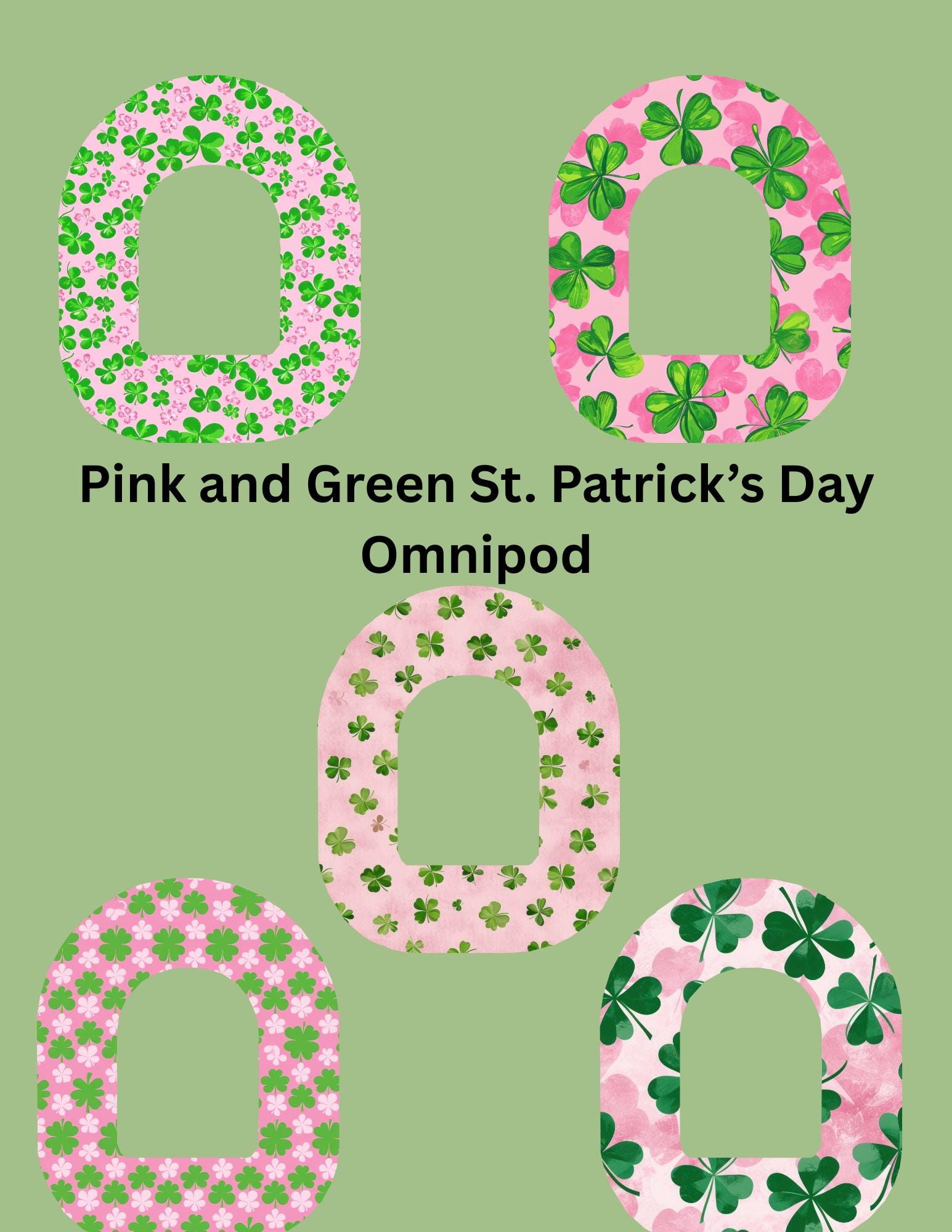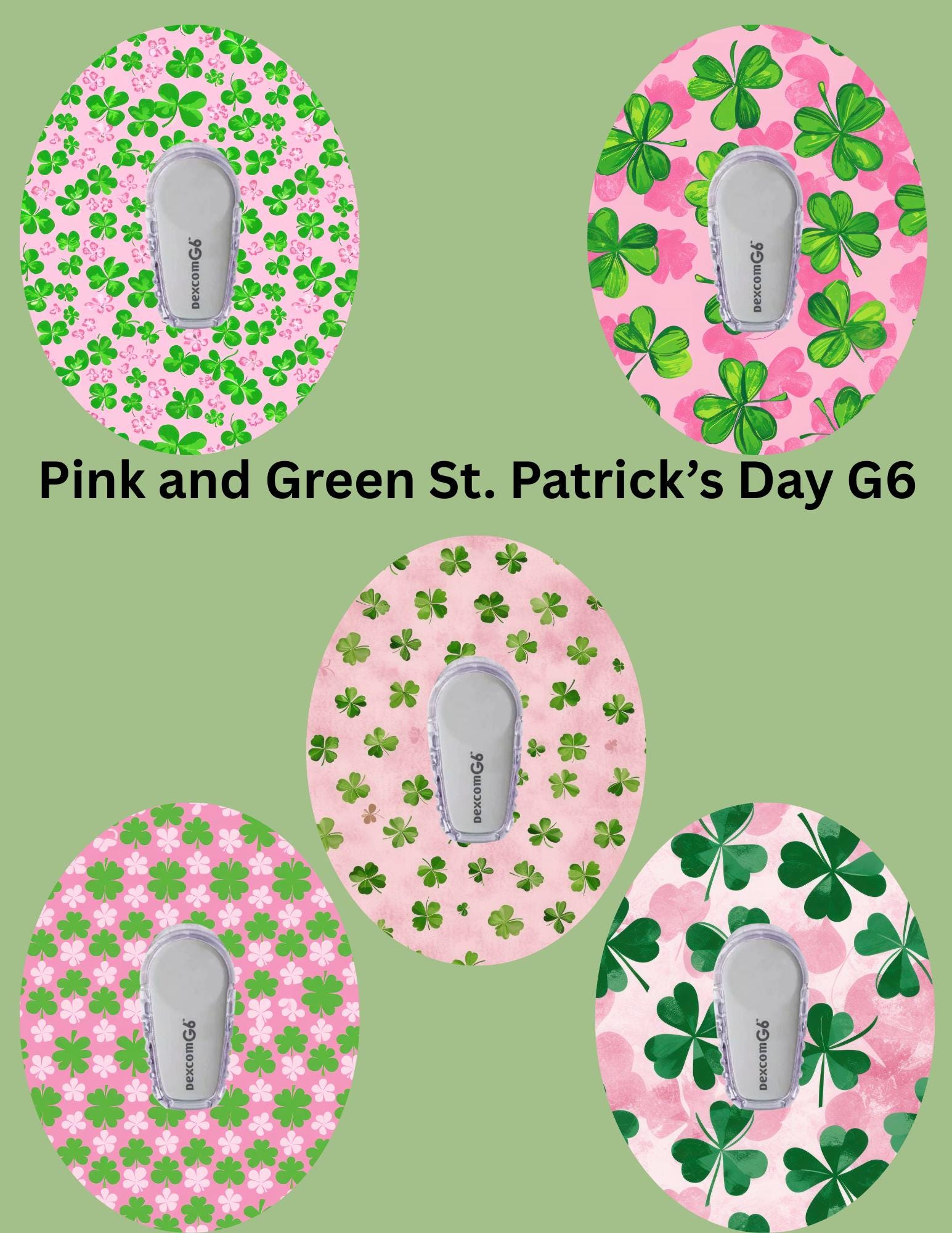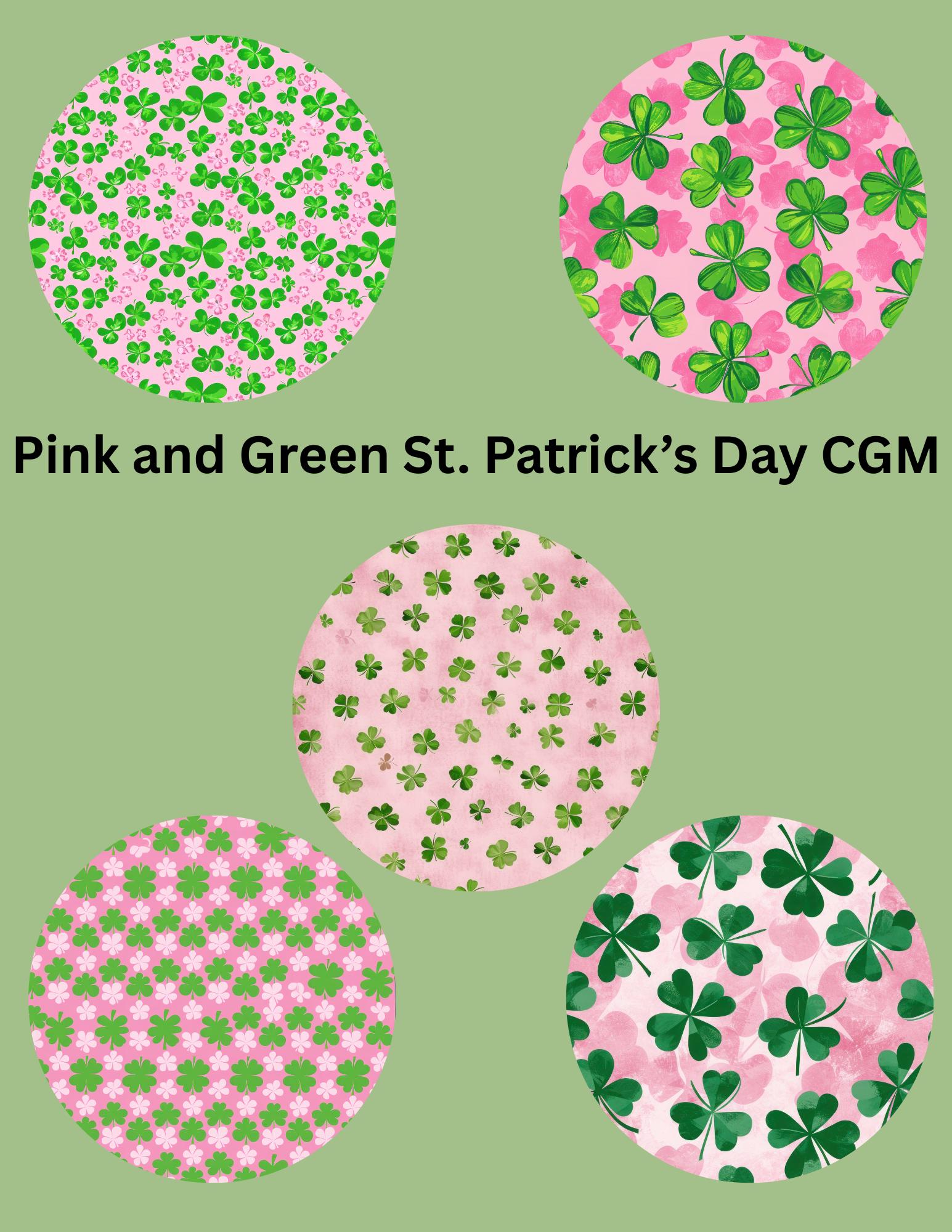 Pink and Green St. Patrick's Day CGM Patches, Dexcom G7, Libre 3, Omnipod Cover, Pack of 5